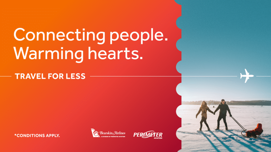 Offer destinations: This offer is valid on Perimeter Aviation or Bearskin Airlines wholly operated flights or flight legs. Does not apply to IET partners.