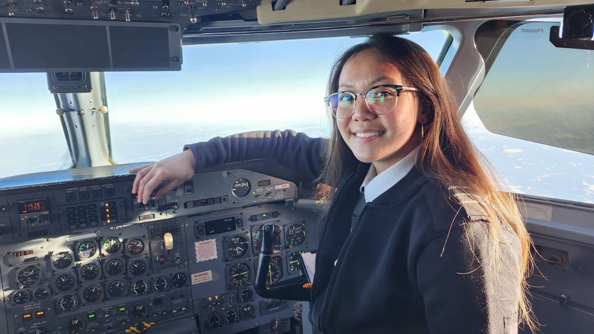 My parents were first generation immigrants to Canada, moving here when I was two. We weren’t wealthy by any means, but when I told my dad I wanted to learn how to fly, he said go ahead, with no hesitation. My parents helped me a lot when I first started taking lessons. Flight training is expensive. I did the Aviation Management course at Red River College, completing all the academic requirements, but my training stopped after getting my private license. I just couldn’t afford it, but I was determined. Eventually I got my foot in the door with Perimeter. I started out in the Technical Records department with the goal of reaching the flight line. I volunteered with the Manitoba Ninety-Nines and the Women in Aviation, to keep the dream alive, but after 5 years, the dream felt unattainable. Just when I thought I’d have to reconsider my career, the Life in Flight program was announced. It was now or never. I moved across the country, completed my flight training at Moncton Flight College, and instructed for a year. I was finally making progress towards the flight deck! I was offered a position flying the Metro with Perimeter but I wasn’t ready for that transition, and I didn’t make it through training. It was a hard lesson, but I knew it wasn’t the end. I instructed again for the Atik Mason Pilot pathway program in Thompson and gained valuable skills on the ramp at Perimeter, before I got another chance to make my dream come true. Now I fly the Dash, living out my dream, a decade in the making.